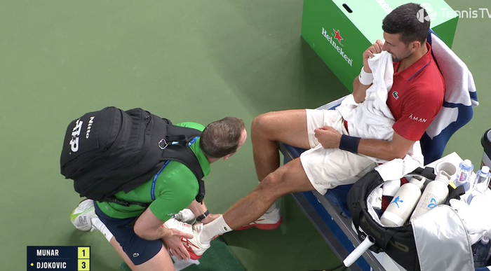 与此同时,这位塞尔维亚球王再度在场上呕吐——这是他连续第二天在比赛中出现类似状况。而更糟糕的是,这位38岁的老将还在比赛中添了一处新伤。