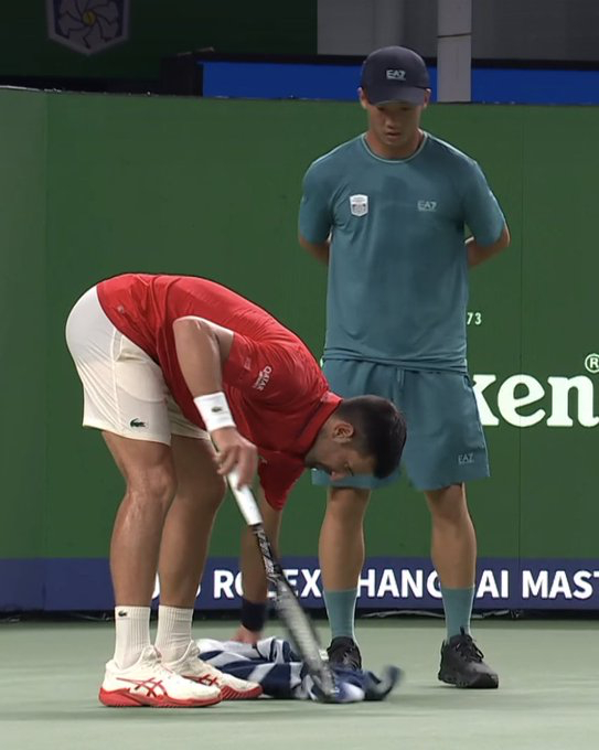 周二,德约科维奇在炎热的上海阳光下迎战穆纳尔,而就在两天前,他在击败汉夫曼的比赛中还曾当场呕吐。本周中国的酷热让众多球员难以承受,德约科维奇也不例外。